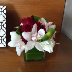 Price: $85.00Red roses and white orchid cube